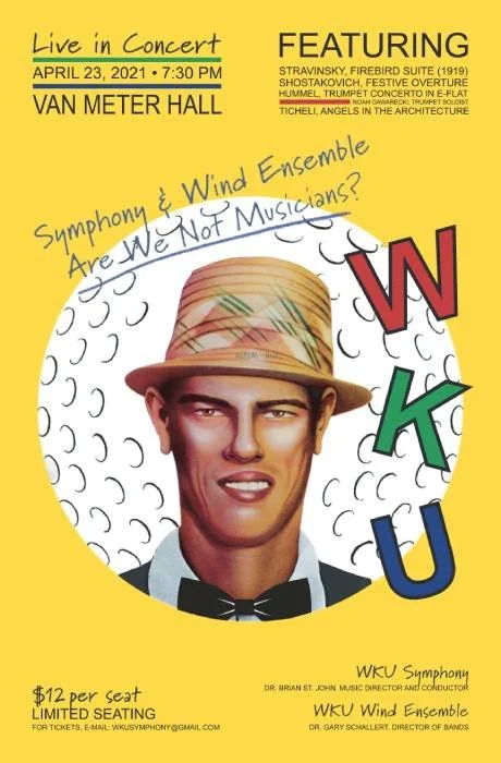 Kevin: If my calculations are correct, it took precisely 1.21 minutes for WKU Symphony members to hang up every poster they had around campus. That’s the power of teamwork. I could go on, but I gotta get back to my top five poster list, so what’s the story on this one?