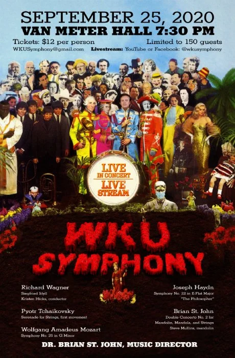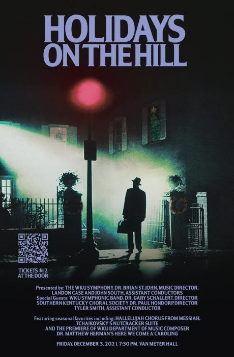 Flash back to 2019 when WKU director of orchestras Dr. Brian St. John, a longtime client of CVWmedia (and longer-time personal friend of mine) approached us with the idea of creating symphony performance posters that reference vintage rock album covers. Since then, the concept has expanded to iconic movie poster concepts.